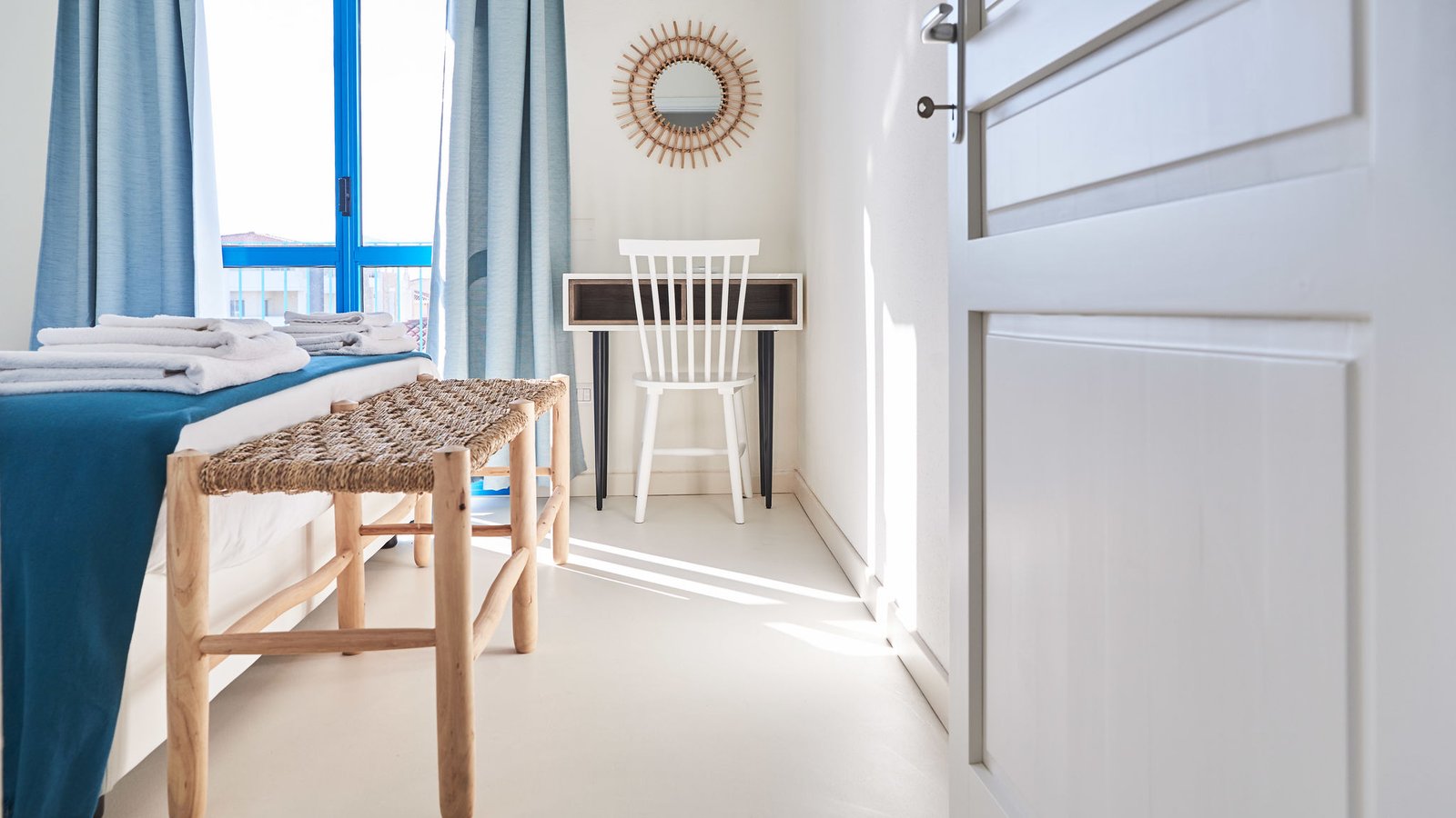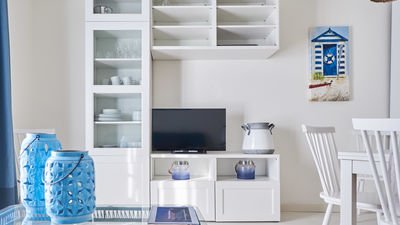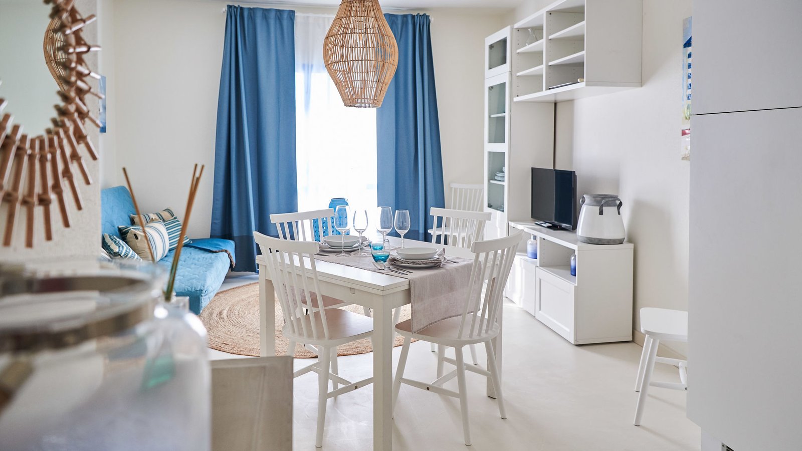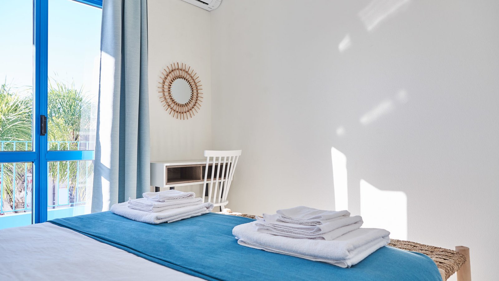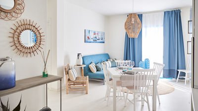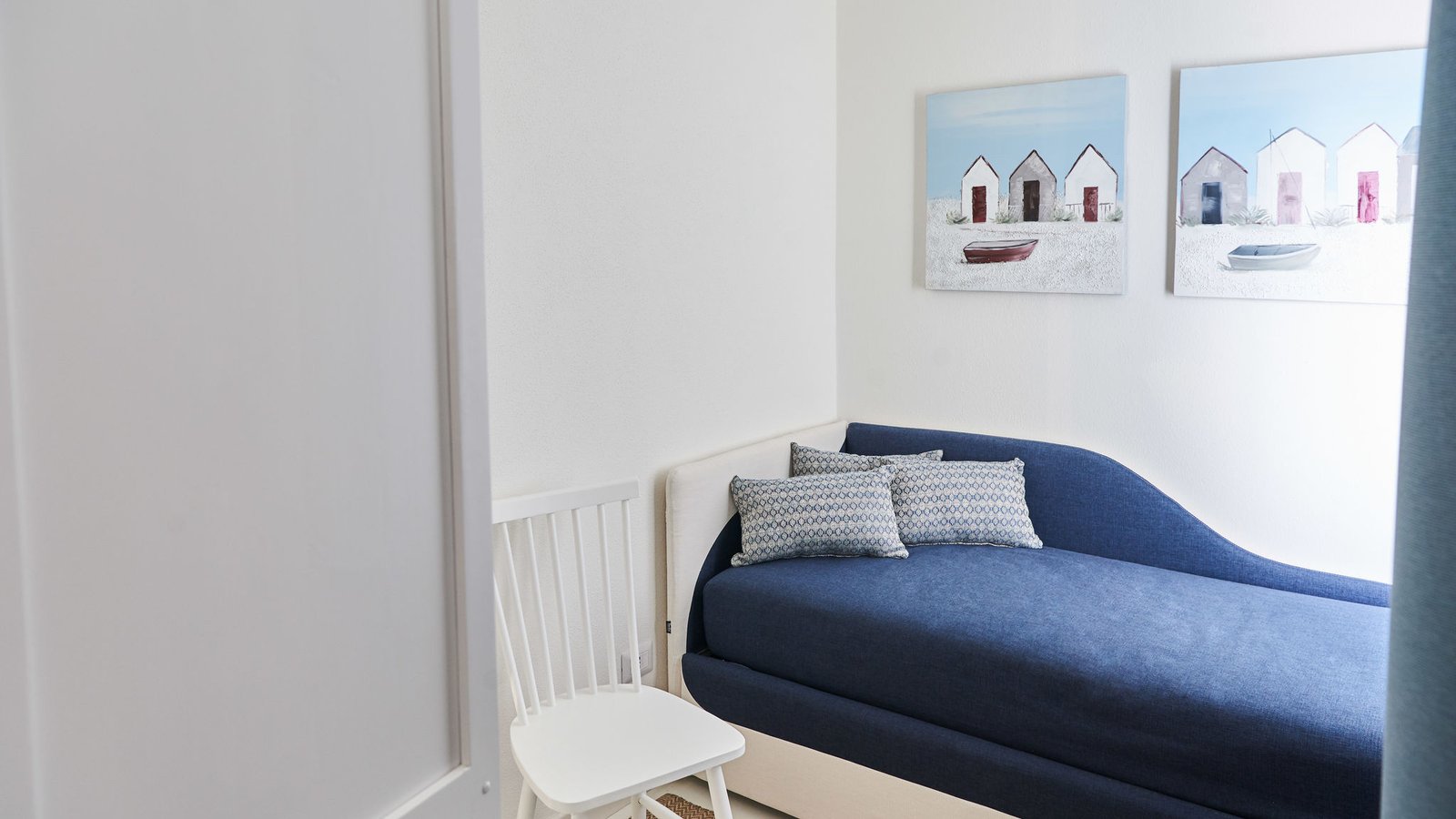 The sleeping area consists of 1 double sofa bed in the living area and 2 bedrooms with 1 double bed and 1 single bed, can accommodate up to 5 people.