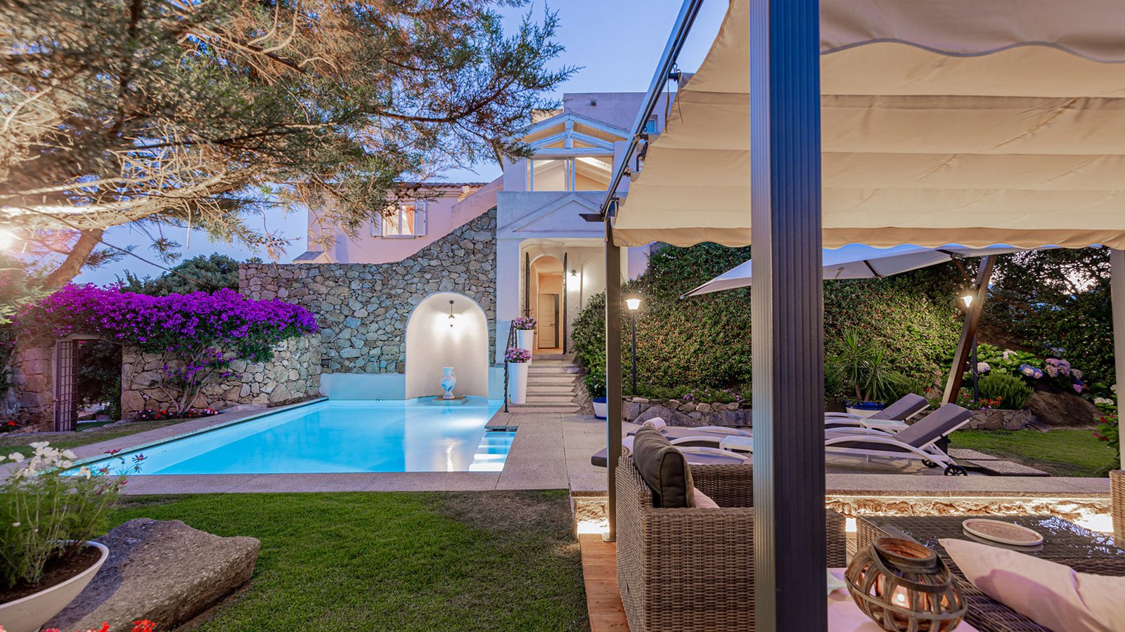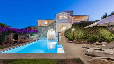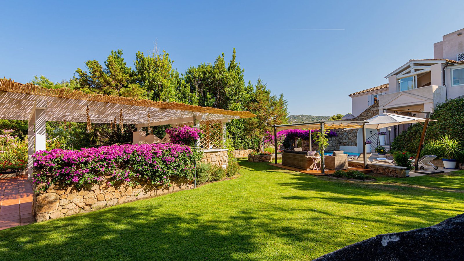 Villa enjoys a strategic location with a seaview, garden view and pool view .