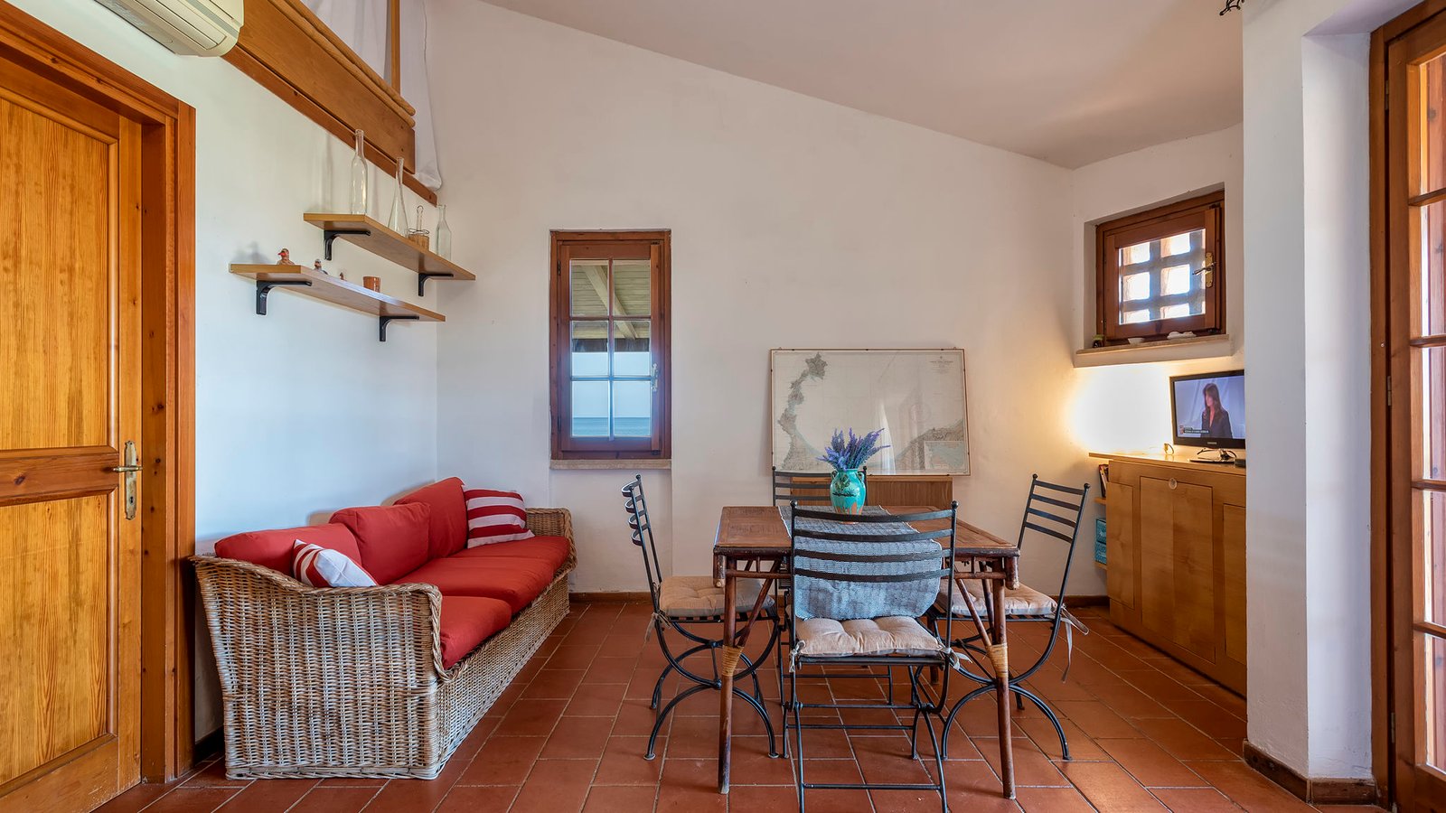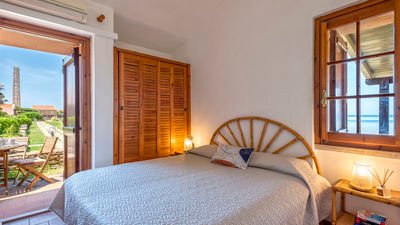 Composed of a double bedroom and a twin bedroom with bunk beds, Villino is the top for those looking for a comfortable home right on the sea. It includes a parking space, private entrance, a living room, a bathroom, a kitchenette, a garden and verandas overlooking the transparent waters of Stintino. The villa is equipped with air conditioning.