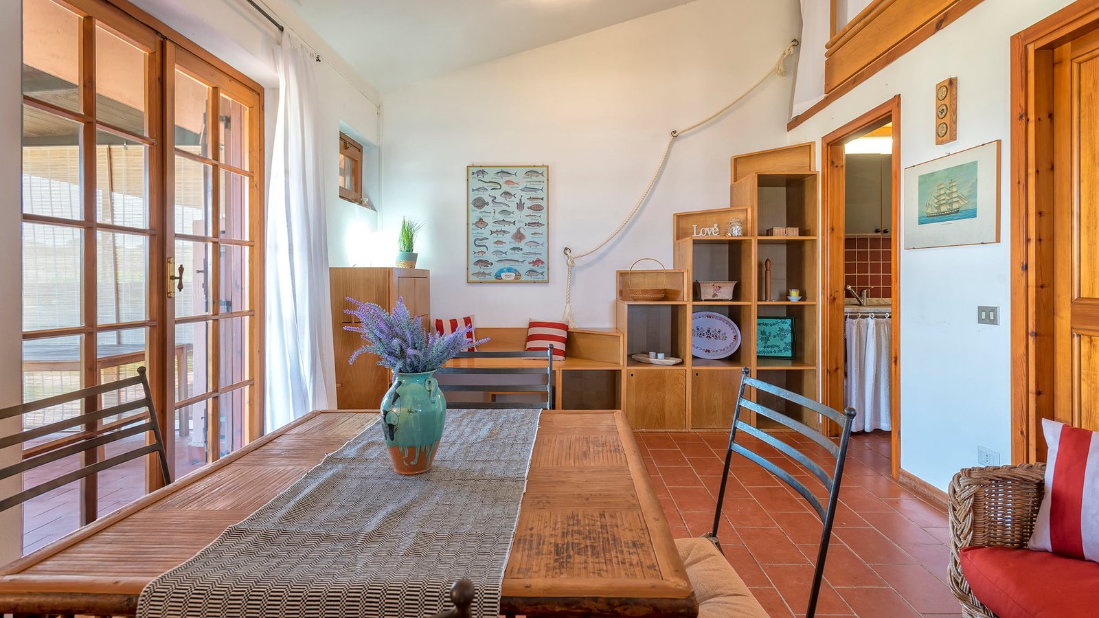 Furnished with care and taste, it has everything you need for outdoor dining a few meters from the coast, mesmerized by the view of the coast and the sound of the waves breaking on the shore.