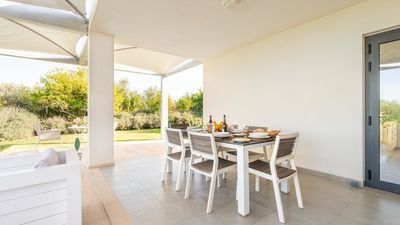 Inside, the villa is equipped with modern amenities, including air conditioning, Wi-Fi, and a washing machine. The kitchen is fully equipped with a range of appliances, including an oven, microwave, and dishwasher, making it easy to prepare meals at home.