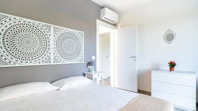 The villa boasts a private swimming pool, perfect for cooling off on warm days, and is surrounded by a lush garden, offering plenty of outdoor space for relaxation. The outdoor area also includes a barbecue, an outdoor dining space, and a solarium where you can unwind while enjoying the panoramic sea views.