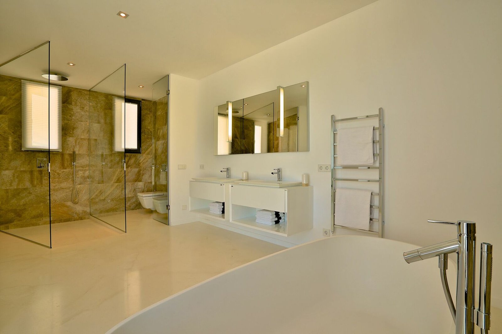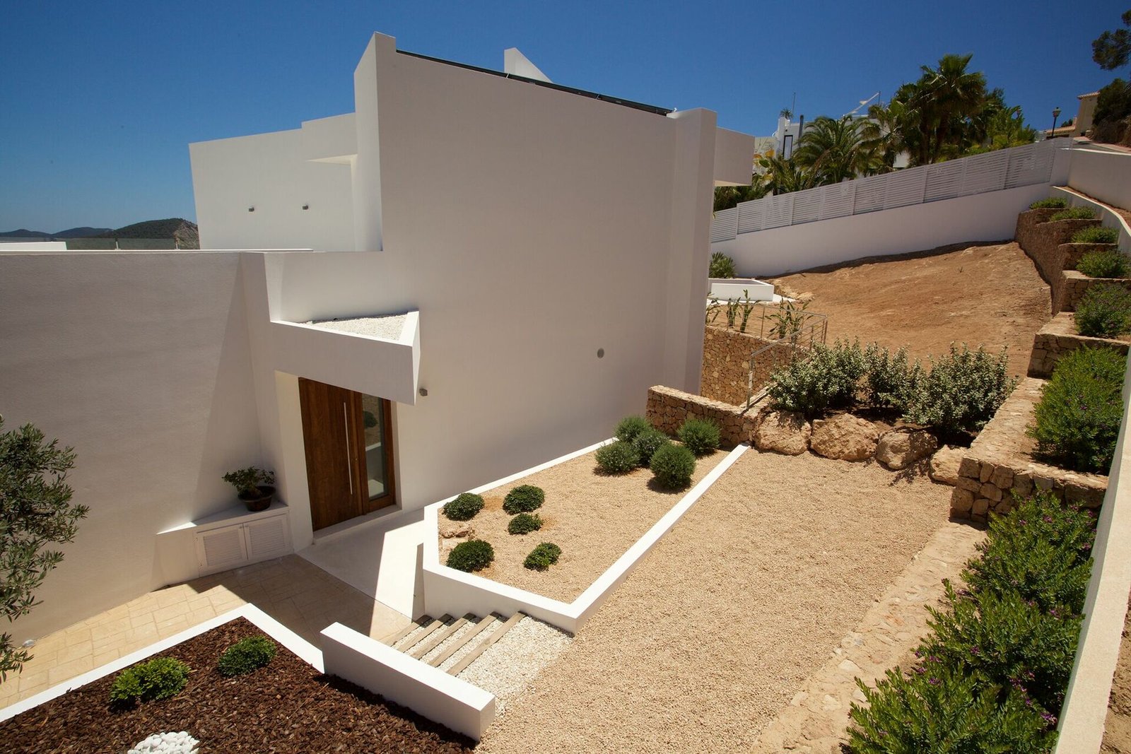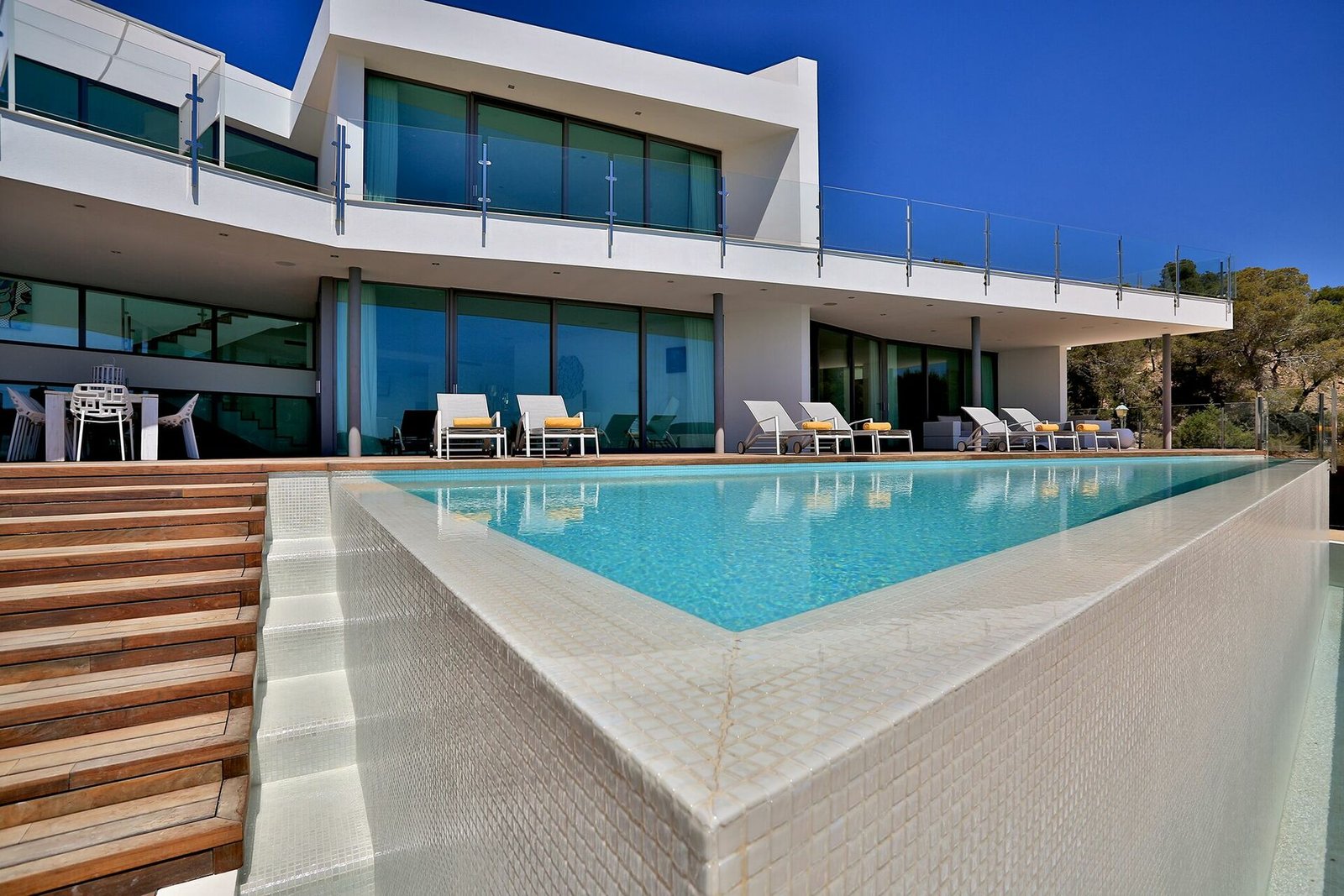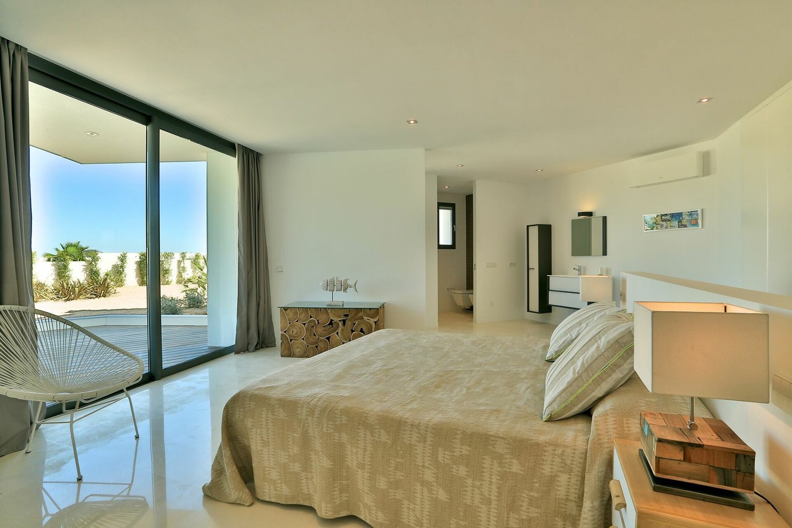 Villa’s most distinctive feature is its outdoor space, with large terraces looking out onto the surrounding nature, and marvelous views of the sea and crystal-clear waters of Es Torrent. An outdoor living area furnished with armchairs, tables and chairs is ideal for lunches, dinners and drinks with your friends and family.