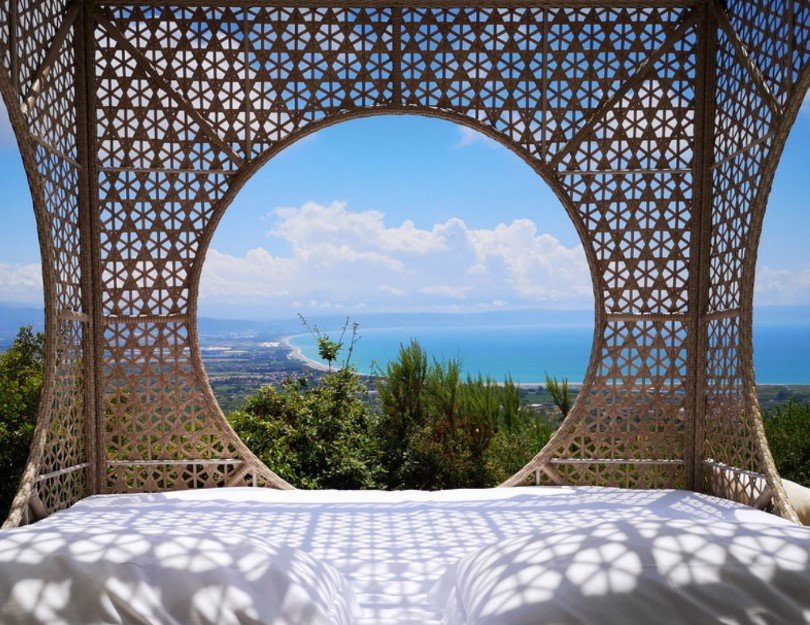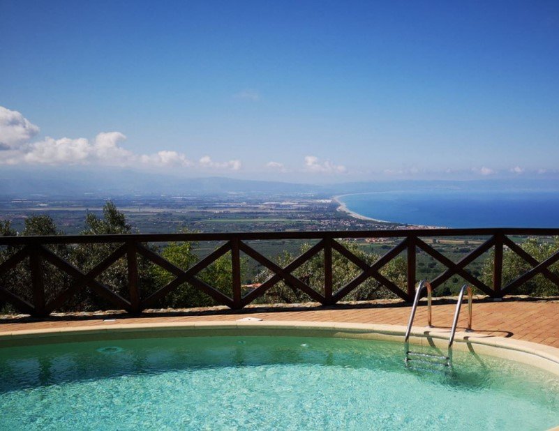 Villa 2 bedroom in Lamezia Terme is a fantastic villa located in the heart of Calabria just few km from the beaches of Falerna and Gizzeria. A great base as well from which to explore the region with Lamezia Terme, Tropea, Soverato, Amantea where there is the best italian “gelato”, the important archaeological site of Terina and the Sila National Park. All these situations are less than an hour driving. Villa 2 bedroom in Lamezia Terme is a perfect place for romantic couples and honeymoon or a small family with two children. In fact, there are different situations to make the couple a unique and unforgettable experience such as the cube where you can sleep under the stars and admire the incredible view of the sea. On request is possible to have a violin or sax player, a yoga teacher, a theatrical actor and a brunch with Calabrian products revisited by a talented local chef. Encircled by the most incredible views (above all from the swimming pool and the solarium) of Tyrrhenian Coast, this property has almost everything: privacy, comfort, space inside and out, panoramic pool, sun, shade and the list goes on and on. The swimming pool is open from May 4th to October 31st.
