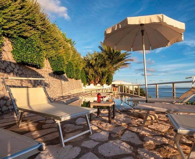 Villa 3 bedroom is an elegant and welcoming two-story apartment that is part of a villa which faces the sun and the sea. It sleeps eight people. From the villa you will enjoy an enchanting view of the sea and of the coastline. This villa is 120 square meters (1290 square feet). It features a private swimming pool, two panoramic private terraces, a private garden, air conditioning (please read description below to check in which rooms the units are installed) and WI-FI Internet access.