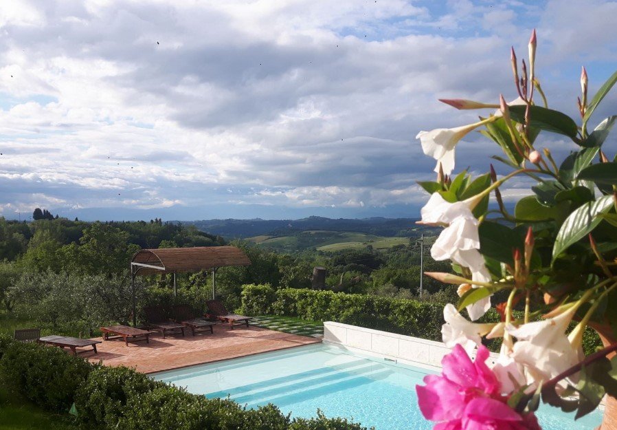Set in its own private park, this charming semi-detached villa with spectacular vistas is superbly located for exploring the very best of Tuscany: Firenze (easily reached by train to the central Santa Maria Novella Station), Siena, The Chiantishire, San Gimignano, Lucca, Pisa, Volterra, San Miniato and Certaldo are less than an hour driving. Villa 4 bedroom in Montaione is extremely spacious, and further enhanced by an entirely fenced private garden (3000 sqm) with tended lawns, several plants, comfortable private pool and big solariun-terrace with lounge area, patio and spectacular view. Once inside the stylish airy rooms with antiques and elegant furniture, Tuscan ceiling and tiles are classy and grandiose. It is a great holiday for large families or groups of friends who want to live in deluxe and peaceful atmosphere with only the sounds of nature to disturb the tranquillity. A stay at Villa 4 bedroom in Montaione provides completely unique experience.