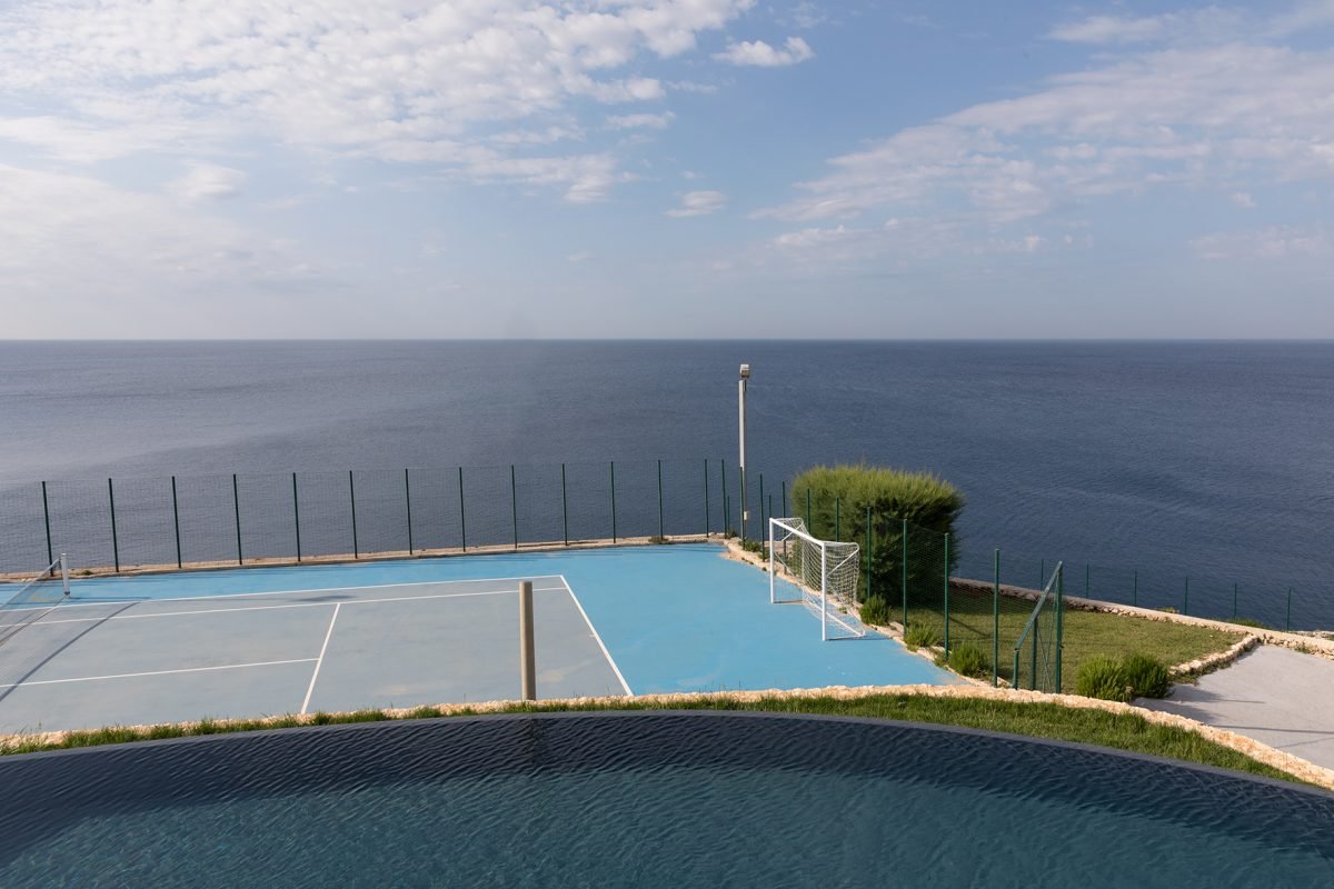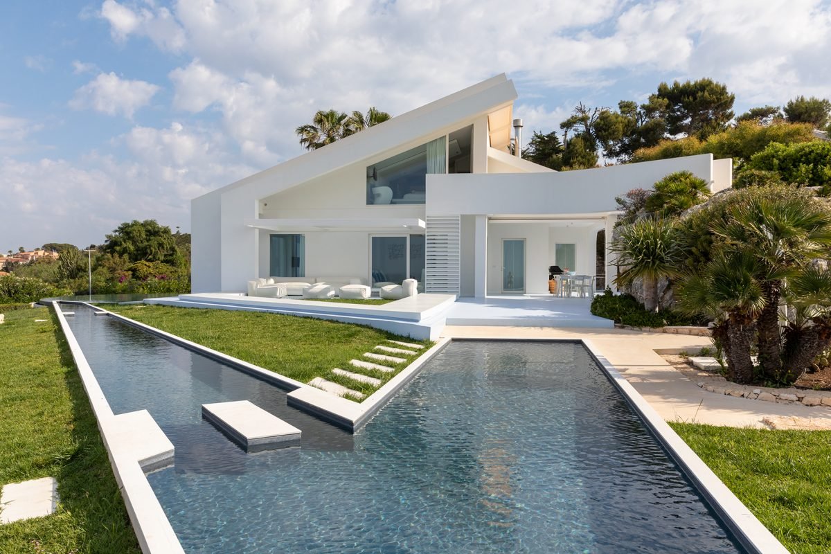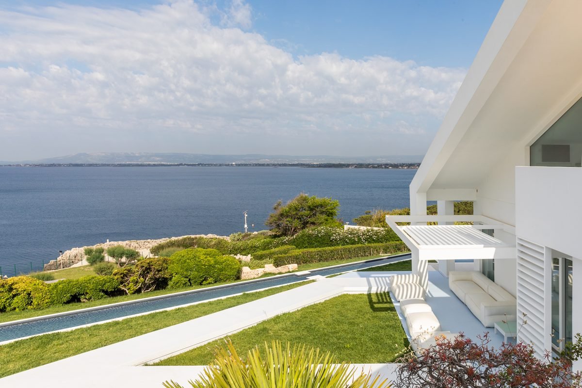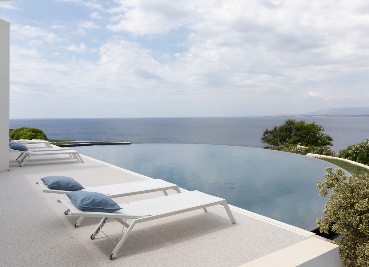 Villa 4 bedroom in Plemmirio SR is divided into two buildings, both surrounded and enclosed by the swimming pools. The main body of the house resides on two floors: the ground floor is on the same level as the terraces and consists of two ensuite bedrooms with views and direct access to the heated swimming pool, a living space with a fully-equipped kitchen, and an open space with a dining room area, living area, and television. The guest bathroom completes the floor.