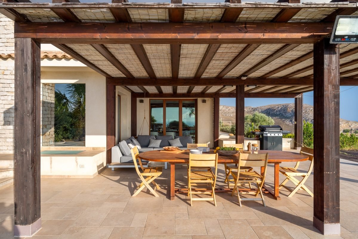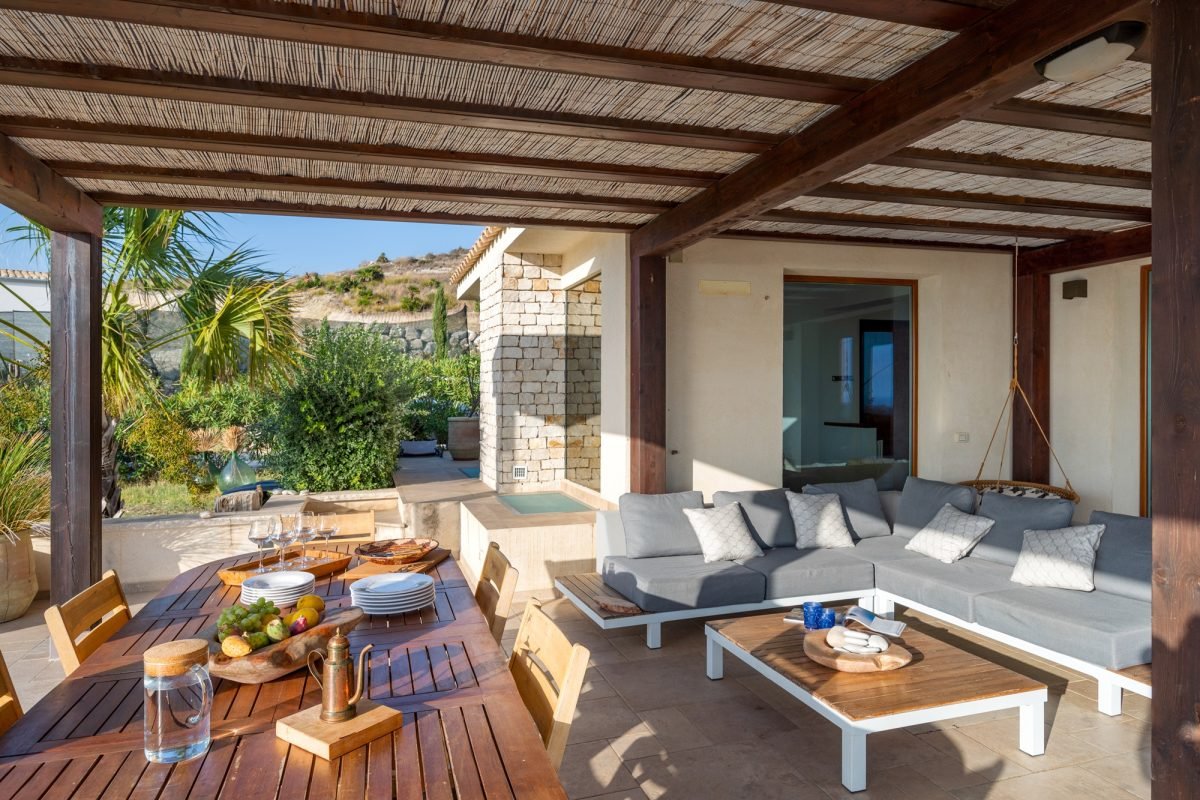 The outdoor spaces, curated to the smallest details, offer welcoming corners for outdoor dinners and lunches, surrounded by a pleasant patio which evokes lively evenings and conversation.