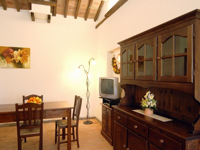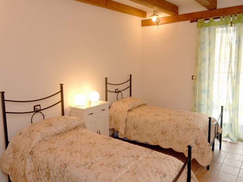 The house is composed of 3 apartments with independent entrances but it is rented as private villa for 3/4 families and couples or group of friends. The house is a classically solid tufa stone construction with thick walls that make for a cool interior in summer and a warm cosy feel at other times of the year. It is beamed and simply furnished in a solid dark wood fashion, as are the characteristically stout doors and windows shutters. To one side of the property is a swimming pool which also provides an excellent panorama.